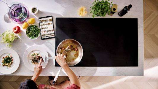 De inductiekookplaat met Celsius°Cooking™ kan communiceren met de afzuigkappen die uitgevoerd zijn met Hob-2-hood functie*. Diverse functies van de afzuigkap kunnen automatisch, maar ook handmatig worden bepaald. Het afzuigniveau, verlichting instellingen en meldingen zijn dan te zien en te bereiken via het centrale touch display op de inductiekookplaat.