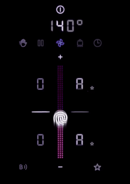 Dankzij de meerkleurige touchslider (sControl+) bedien je kookzones, afzuiging en extra functies eenvoudig en overzichtelijk. De kleurcodering helpt je snel te zien welke instelling actief is.