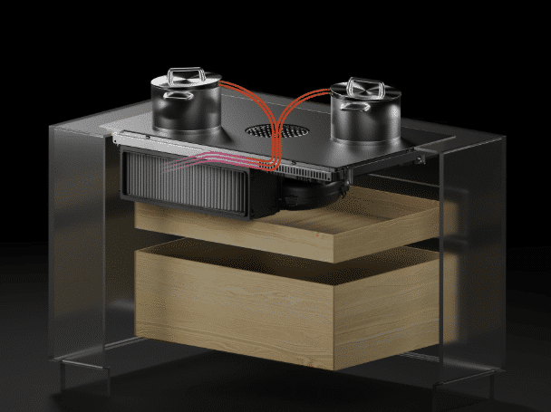 De geïntegreerde afzuiging vangt kookdampen direct bij de bron op en filter deze. Dit zorgt voor een frisse keukenlucht en voorkomt dat geurtjes en vet zich door de kamer verspreiden.Â
