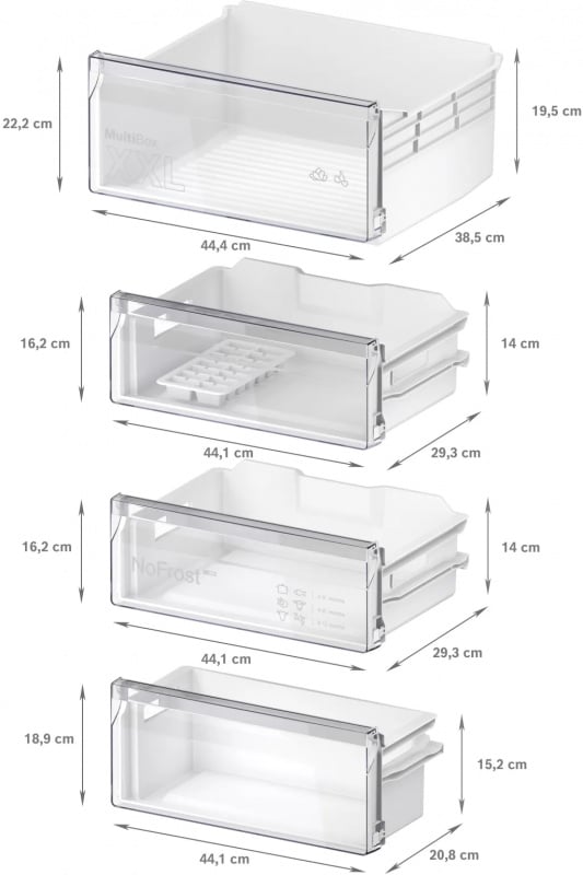 Dankzij NoFrost hoef je de vriezer nooit meer handmatig te ontdooien — ijsvorming wordt effectief voorkomen en producten blijven langer goed bewaard zonder ijsopbouw.