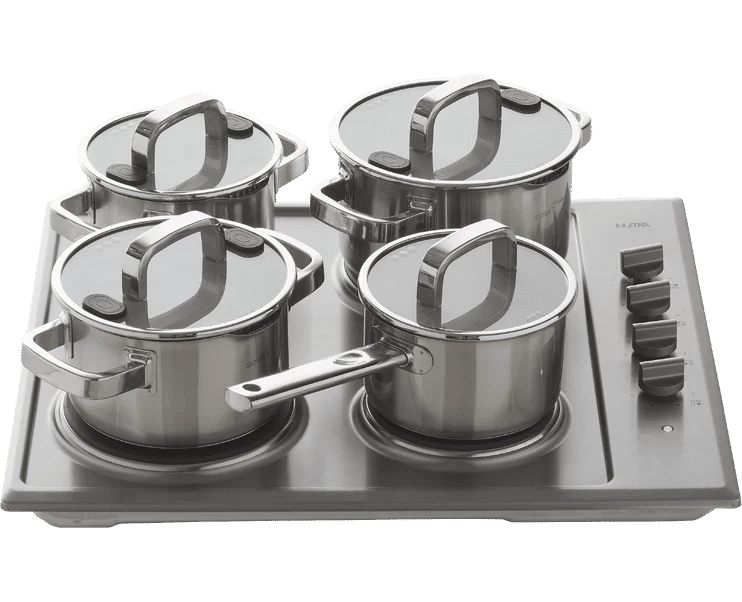 De KE158RVS is uitgerust met vier elektrische kookzones — elk met meerdere standen — waardoor je meerdere gerechten tegelijk kunt bereiden. De kookzones variëren in grootte en vermogen, zodat je flexibel kunt koken: