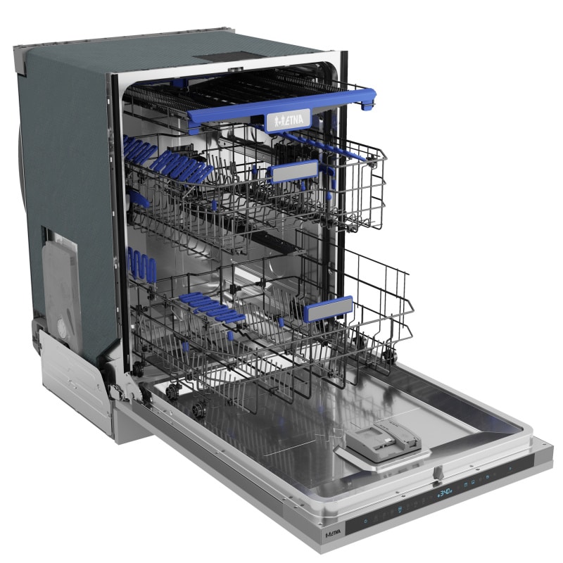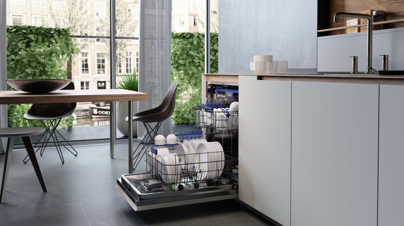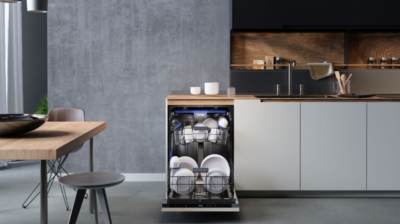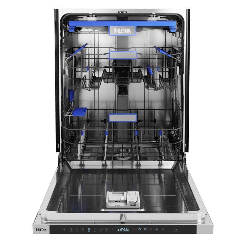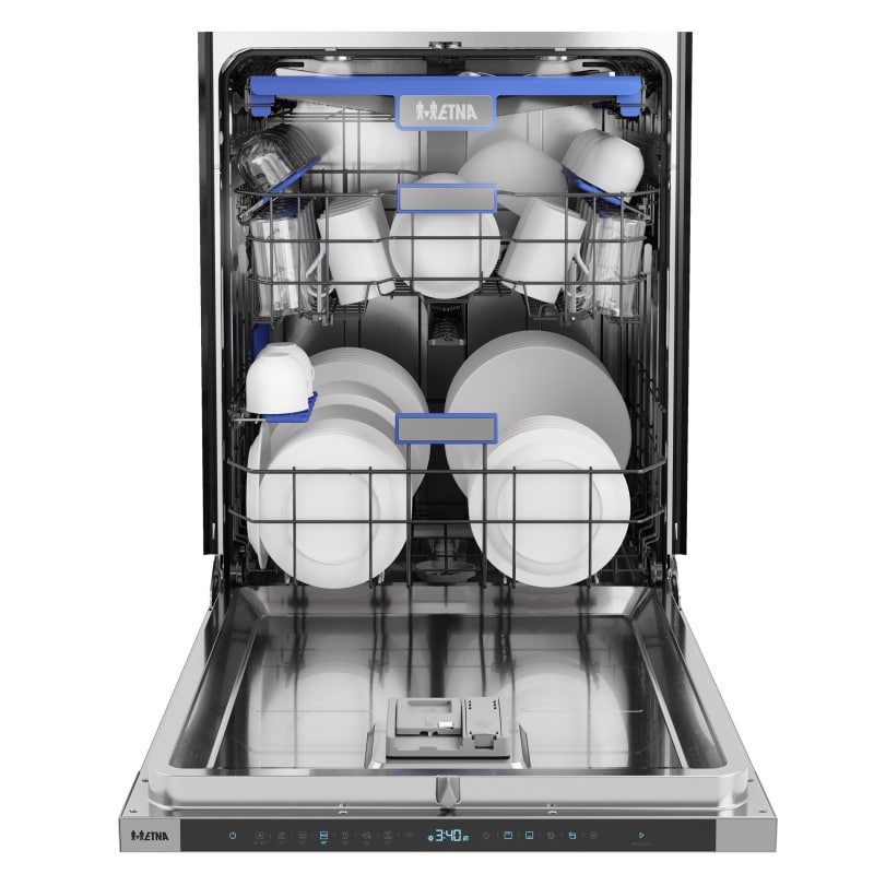 De VW742HMC, volledig geïntegreerde vaatwasser, is een duurzame keuze. Het model is uitgevoerd met een efficiënte koolborstelloze motor met als resultaat een energielabel B. Met een geluidsniveau van slechts 42 dB(A) is het model stil te noemen. Met een XL-inbouwhoogte van 86 tot 91 cm en de derde (flexibele) besteklade kun je maar liefst 16 couverts kwijt. De middelste korf is met en zonder belading in hoogte verstelbaar, zodat je extra flexibel bent in het inruimen van de vaatwasser. Kies je voor de VW742HMC dan kies je voor luxe. Het model is uitgevoerd met led-binnenverlichting en een statuslamp op de vloer. Bepaal zelf of je de deur na het programma automatisch wilt laten openen om de vaat duurzaam na te laten drogen. Het model is daarnaast ook voorzien van een extra droog functie, en de functies turbo speed en zelfreiniging. Tot slot kun je de vaatwasser laten draaien op halve belading, waarbij je zelf kunt aangeven of je de bovenste of onderste korf wilt laten reinigen. Voor extra gebruiksgemak is de ETNA VW742HMC koppelbaar met de ETNA Connect App. Dit stelt je als gebruiker in staat favoriete programma’s in te stellen en de status van je vaatwasser op afstand te volgen. Ook geeft de app je hulp bij vragen over het apparaat of meldingen.
