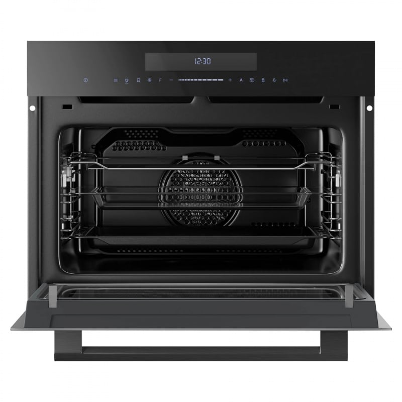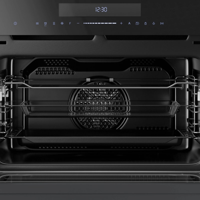 Met een bruikbare inhoud van ongeveer 50 liter is deze combimagnetron groot genoeg voor grotere schalen, ovenschotels of meerdere gerechten tegelijk — ideaal voor gezinnen of frequente koks.
