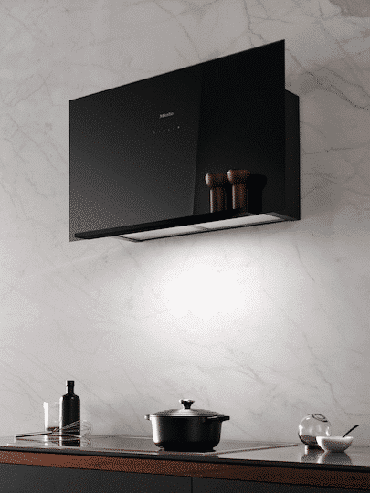 Miele DA 9092 W Screen OBSW | Wandschouwafzuigkap met verticaal glazen front en bijzonder vlak design voor meer ruimte.