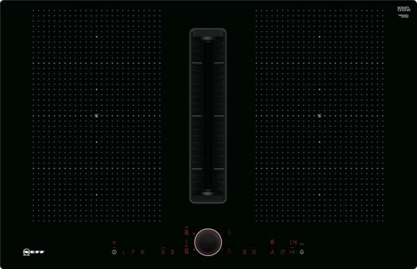 | Inductiekookplaat met volledig geïntegreerde krachtige afzuigunit met een keramisch glas element |
