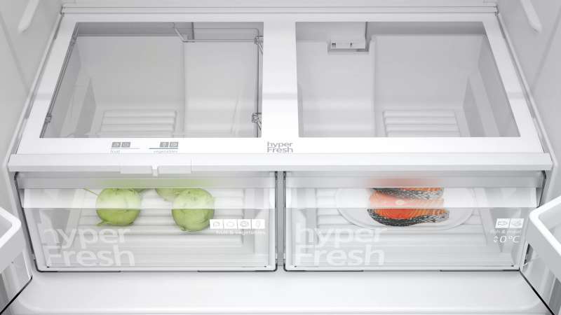Alle ruimte die je nodig hebt voor veel groente en fruit. En een apart compartiment voor vlees en vis met zijn eigen koude-luchttoevoer om je etenswaren nog langer vers te houden. Meer ruimte en onder ideale omstandigheden etenswaren bewaren in één systeem.