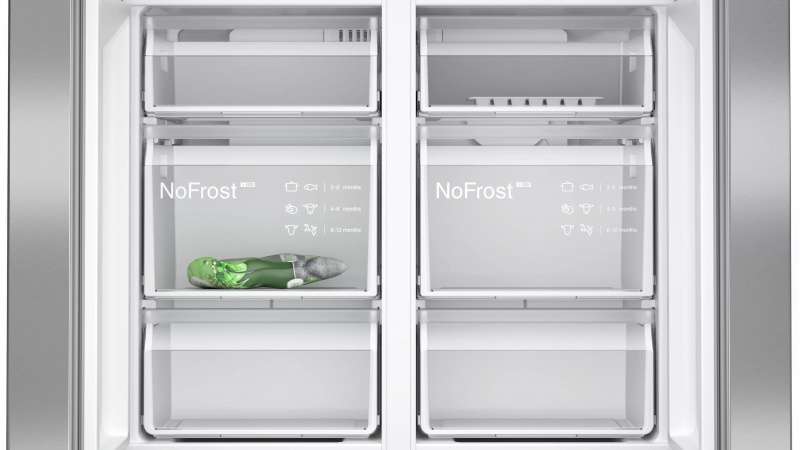 Je hoeft je vriezer niet meer te ontdooien om je bevroren eten goed te bewaren en het apparaat energiezuinig te houden. De noFrost-technologie verwijdert vocht en houdt de lucht droog. Hierdoor kan zich geen ijs vormen op de wanden van je vriezer en ingevroren etenswaren. Dat bespaart jou de moeite van het ontdooien. Bovendien bespaart het energie, want een ijsvrije vriezer werkt zuiniger.