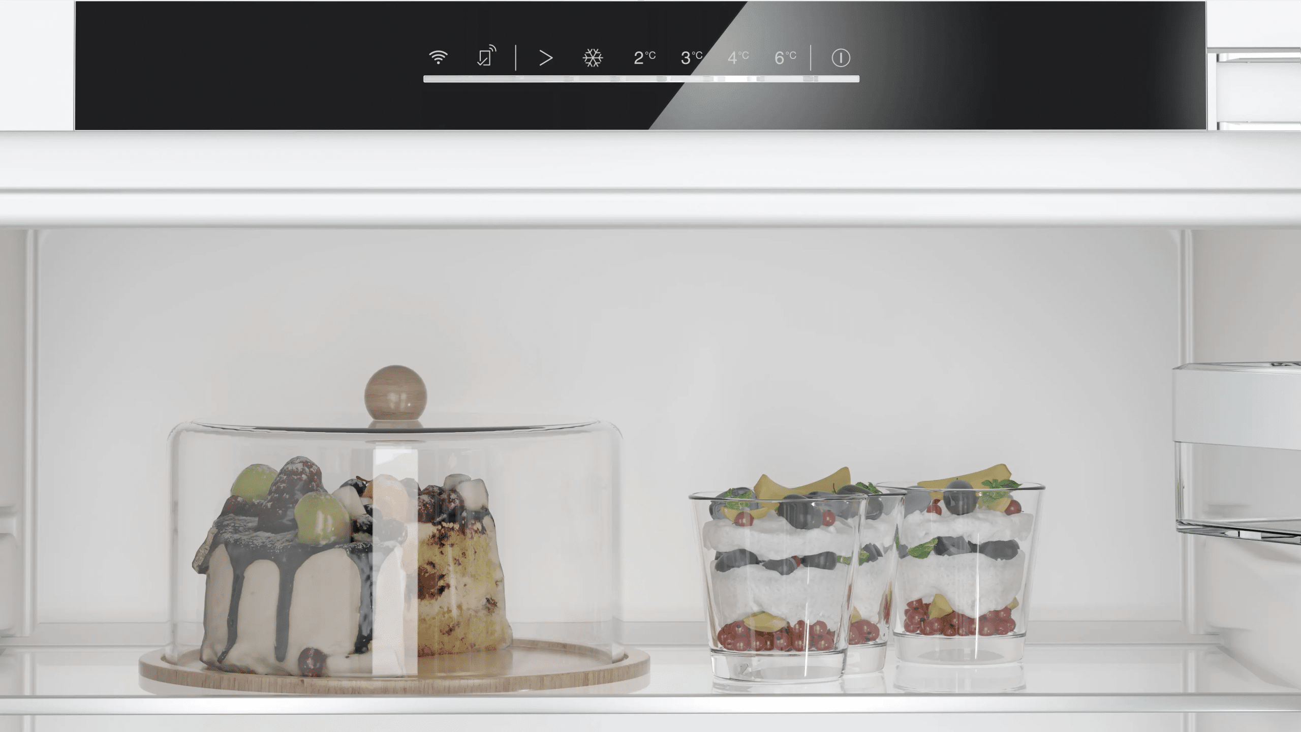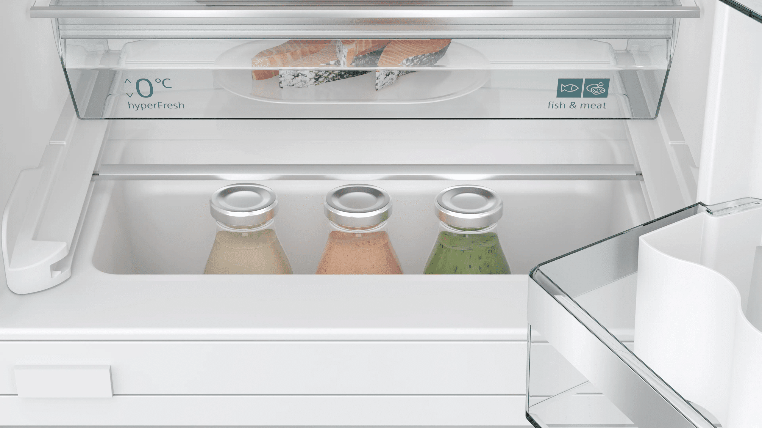 De softClose-deursluiting zorgt ervoor dat de koelkastdeur automatisch en zacht sluit wanneer deze minder dan ongeveer 20° openstaat. Hierdoor sluit de deur altijd goed en wordt energieverlies voorkomen.