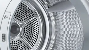 Onze innovatieve zelfreinigende condensor reinigt zichzelf automatisch door effectief pluizen te verwijderen, waardoor je wasdroger cyclus na cyclus optimaal presteert. Deze geavanceerde functie garandeert uitstekende droogprestaties en een constant laag energieverbruik. Ons systeem wordt grondig getest tijdens onze levensduurtests, zodat je zorgeloos kunt genieten van een efficiënte werking.